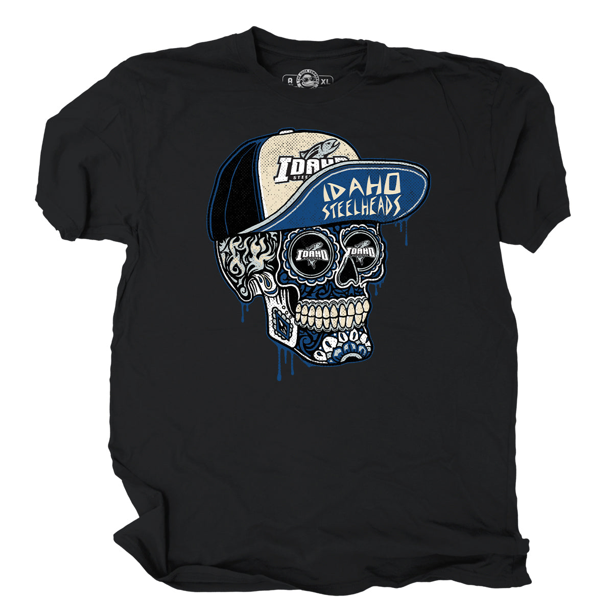 IDAHO STEELHEADS SKATER SKULL TEE, BLACK